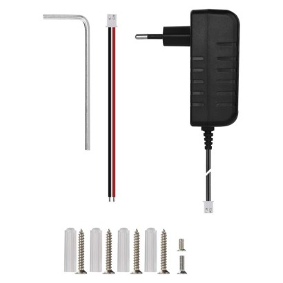 obsah balenia: 1× jednotka dverovej kamery, 1× štít proti dažďu, 1× bezdrôtový zvonček, 1× napájací zdroj, 1× pripojovací kábel, 1× inštalačný materiál, 1× príručka|ochrana proti odcudzeniu: áno