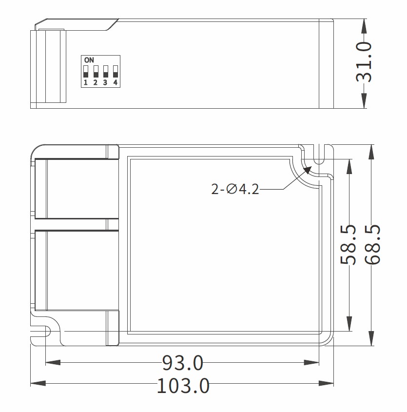 16 možných nastavení konštantného výstupného prúdu pomocou DIP prepínačov v rozsahu 450-1100mA.