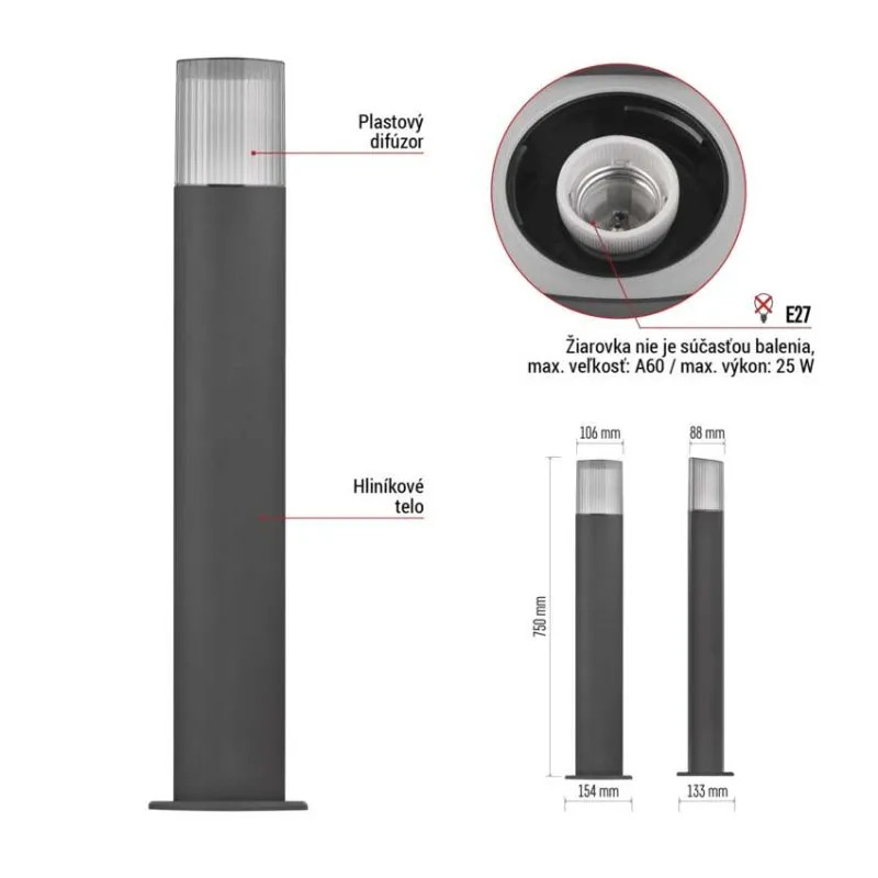 Home/Svietidlá/Záhradné svietidlá/LED záhradné stĺpikové svietidlo, 15,4 x 13,3 x 75 cm, 1 x E27, 25 WLED záhradné stĺpikové svietidlo, 15,4 x 13,3 x 75 cm, 1 x E27, 25 WLED záhradné stĺpikové svietidlo, 15,4 x 13,3 x 75 cm, 1 x E27, 25 W(images are for illustrative purposes only)Product codeZGL0C0PEAN code8592920143889Part number1554002004ManufacturerEMOS331.24,- kr excl. VAT407.42,- krPrice incl. VATin stock ks Add to cart(recycling fee is counted in the price)