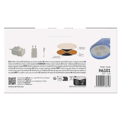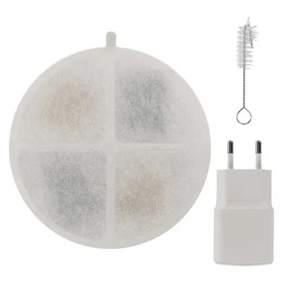 obsah balenia: fontána, napájací adaptér, prívodný kábel, čerpadlo, filter k čerpadlu, bavlnený filter, čistiaca kefka