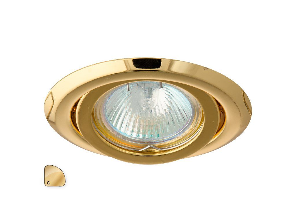 Bodovka vstavaná do podhľadu výklopná, vo farbe zlatá, Rozmery montážneho otvoru 80mm, pre hlaogénovú žiarovku MR-16/G5,3/12V/max50W Žiarovka nie je súčasťou dodávky. Pre tieto žiarovky sa používa objímka G5,3, ktorá je súčasťou dodávky. Alterntívou pre tieto svietidlá sa môže použiť žiarovka s päticou MR-16,G5,3. Žiarovka sa uchytí do kovového krúžku pomocou pružinky. Pre tieto svietidlá doporučujeme namiesto halogénových žiaroviek použiť úsporné led žiarovky, ktoré sú schopné nahradiť hlaogenky z hlľadiska svietivosti a prinášajú vysokú úsporu. Pri výbere žiarovky je potrebné zvážiť, k akému účelu chceme svietidlo použiť. Doporučujeme svetelný zdroj MR 16 50W 60 (kód GXZH017), LED48 SMD MR16 3,5W-CW (kód GXLZ005).Dodatočné parametre