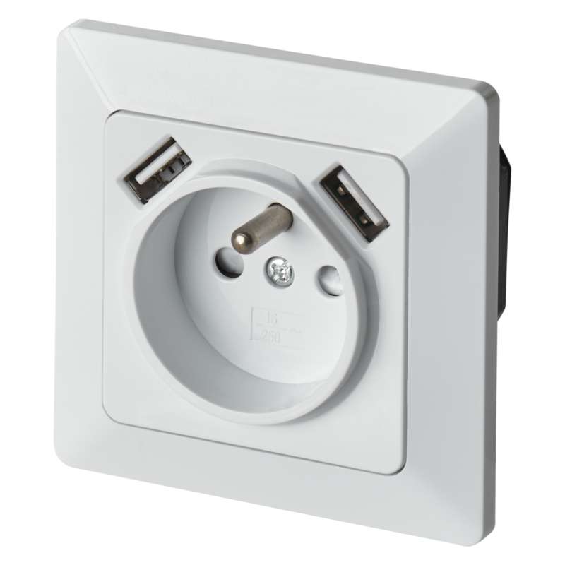 produkt: zásuvka jednonásobná s ochranným kolíkom a USB výstupom 2,1 A max.