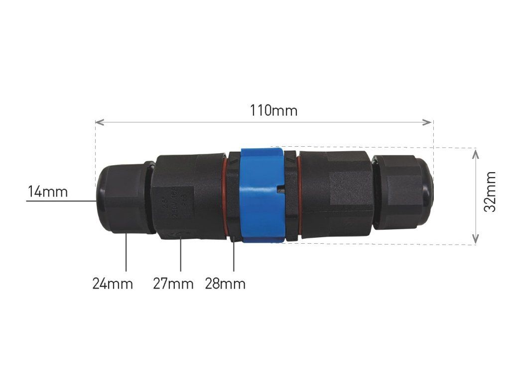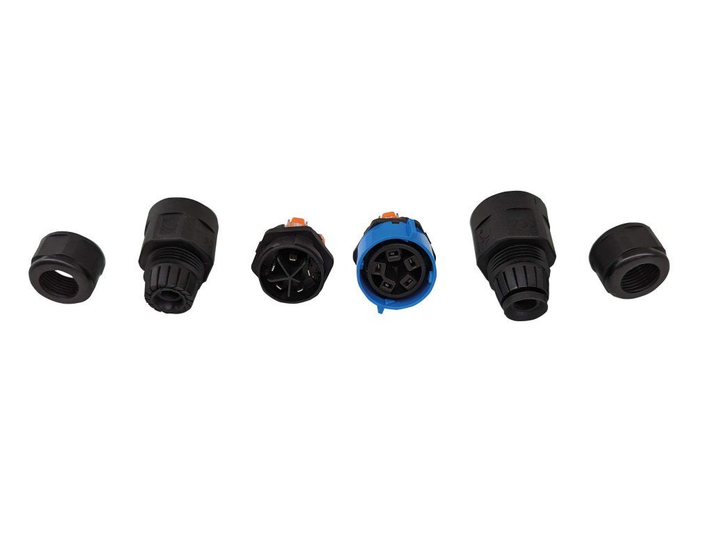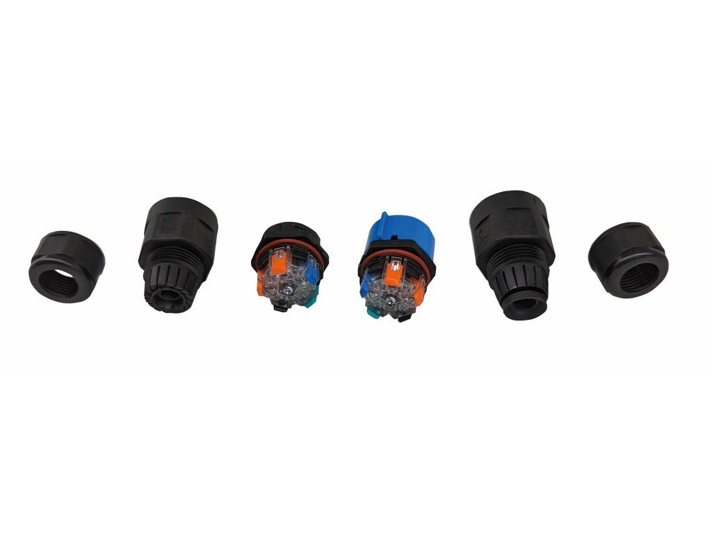 Prepojovacie príslušenstvo Pre rýchle bezskrutkové zapojenie. Jednoduché rozpojenie konektora. Systém zásuvky a zástrčky so zaistením otočným zámkom. Materiál: polyamid PA66 IP68 káblová vodotesná spojka. Vhodné na vonkajšie použitie, napríklad na pripojenie LED reflektorov, street light a highbay svietidiel. Pre vodiče s prierezom 0,75-2,5mm2 (dĺžka odizolovania 10mm) Maximálny prierez vodičov 2,5 mm2 (dĺžka odizolovania 16mm) Počet vodičov: 5 Priemer kábla: 6/7 - 11/12 mm Maximálna U/I: 250V/16A Určené na povrchovú inštaláciu. Bez pevnostnej fixácie kábla v ťahu. DOSTUPNÉ LEN V BALENÍ PO 10KS.Dodatočné parametre