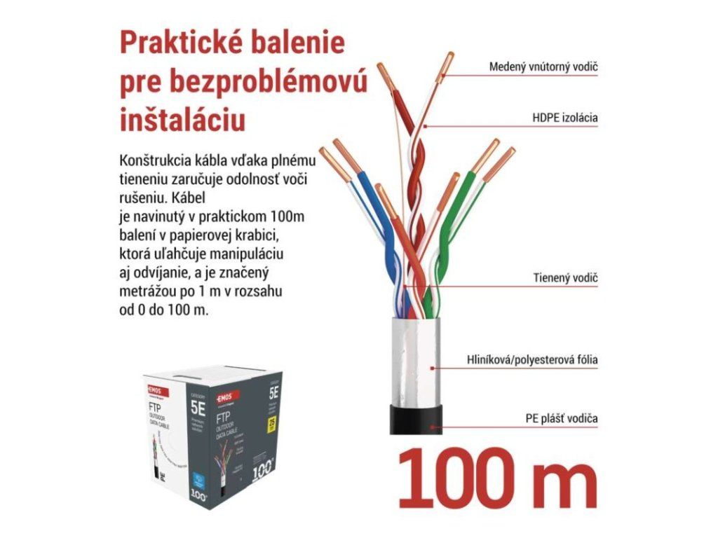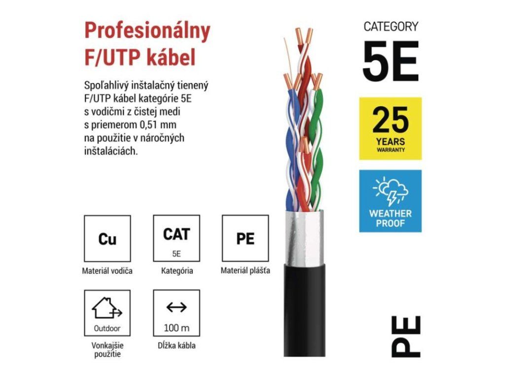 | značenie kábla: | FTP Cat5E PE OUTDOOR 1 – 100 m |