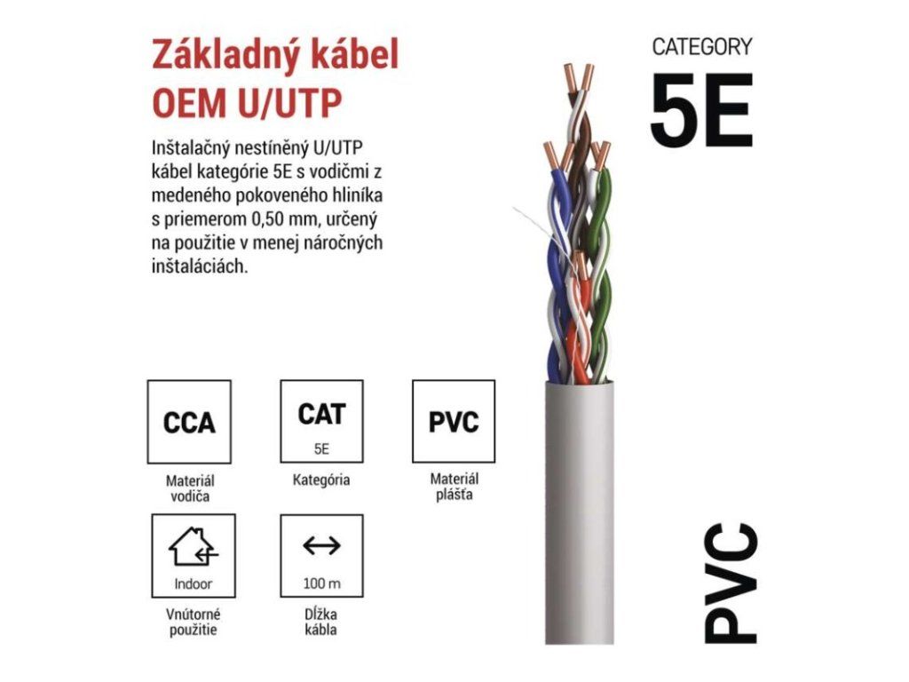 Datový kábel UTP CAT 5E PVC CCA, 100m
