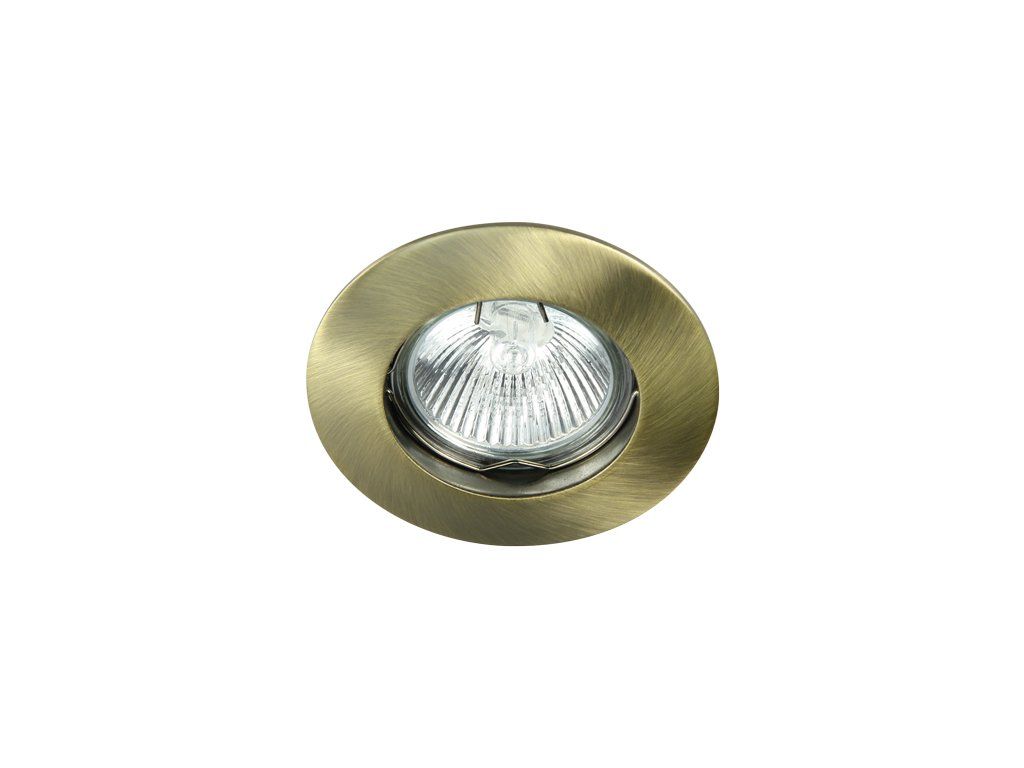 Bodovka vstavaná do pohľadu pevná, farba brúsená mosadz. Pre hlaogénovú žiarovku typu MR-16 max 50W( kód GXZH017) , alebo LED 60 SMD MR16 4W-WW (kód GXLZ029). Žiarovka nie je súčasťou dodávky. Pre tieto žiarovky MR-16/12V sa používa objímka G5,3, ktorá je súčasťou dodávky. Žiarovka sa uchytí do kovového krúžku pomocou pružinky. Určená k montáži na normálne horľavé povrchy.Dodatočné parametre