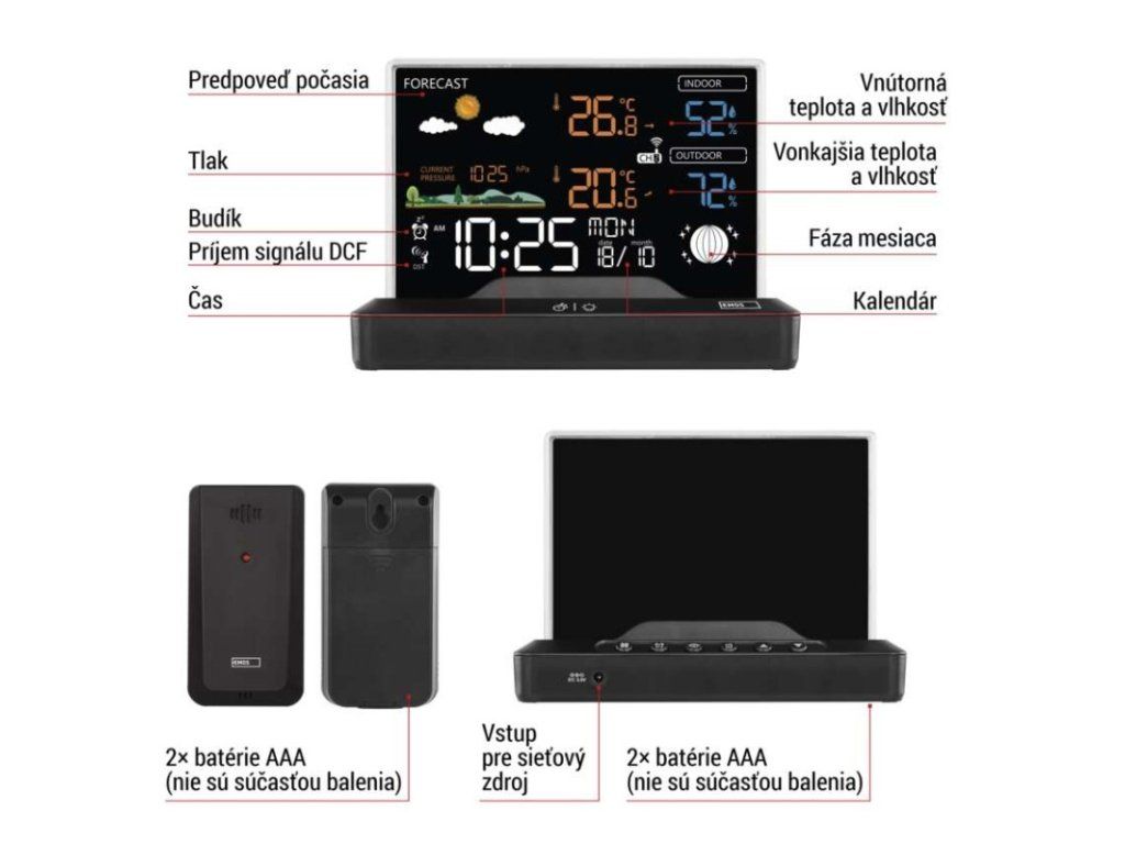 | napájanie stanice: | 2× 1,5 V AAA (nie sú súčasťou balenia) |
