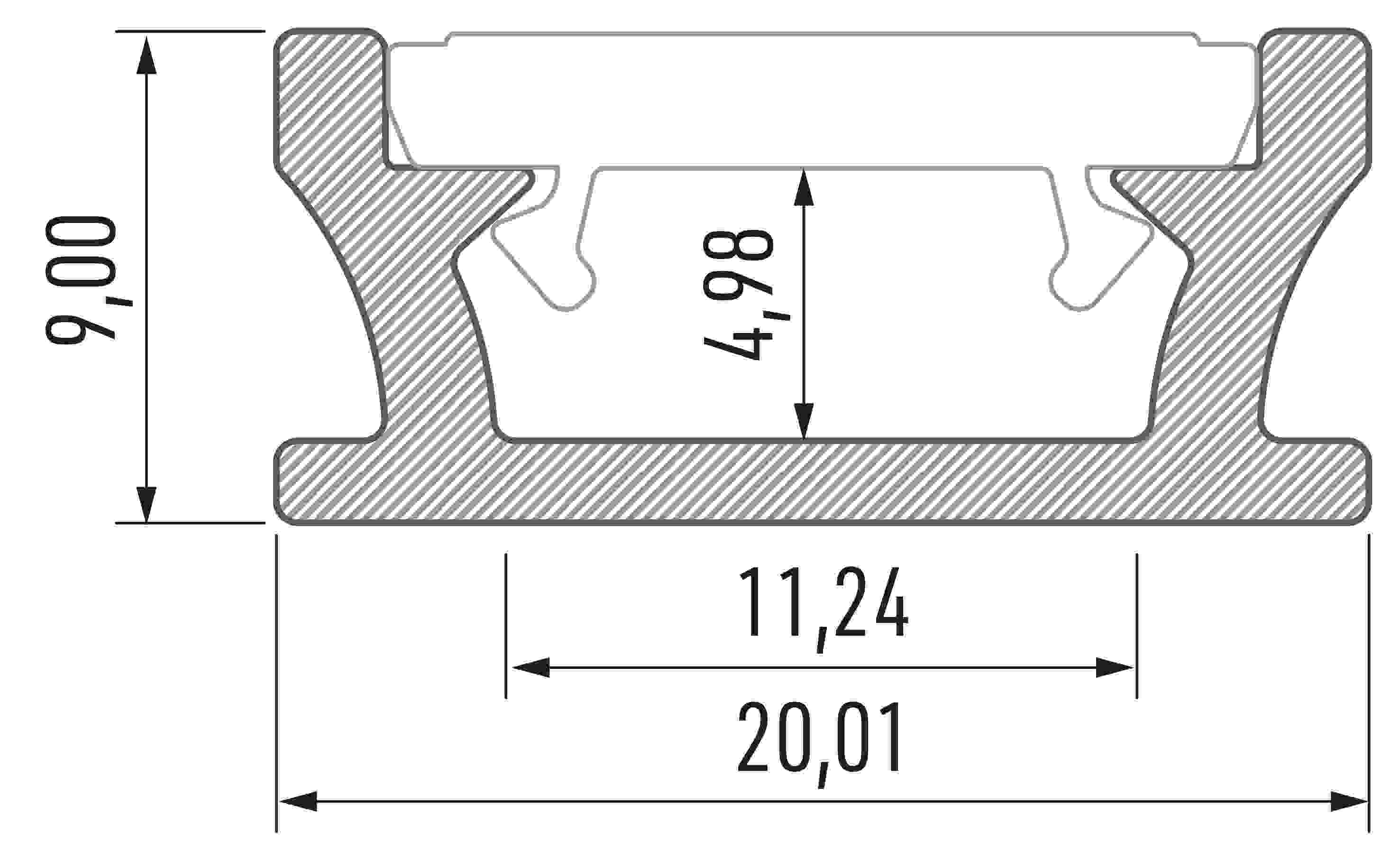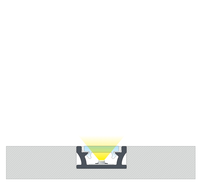 Určený na zapustenú montáž do medzery, alebo do vyfrézovanej drážky.