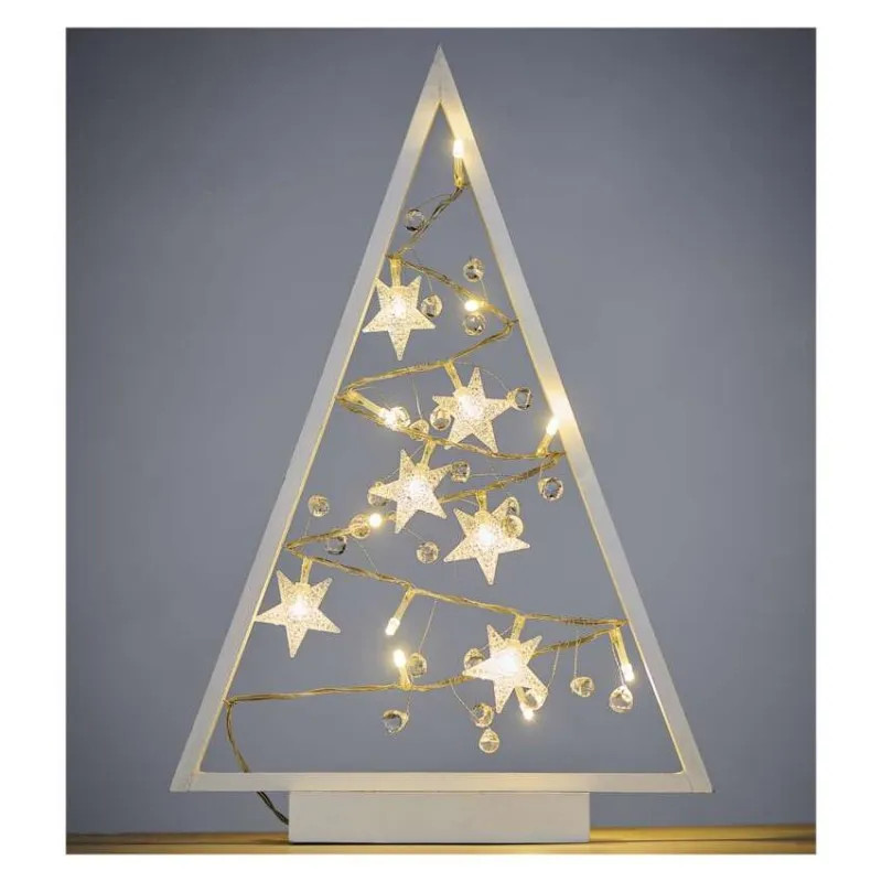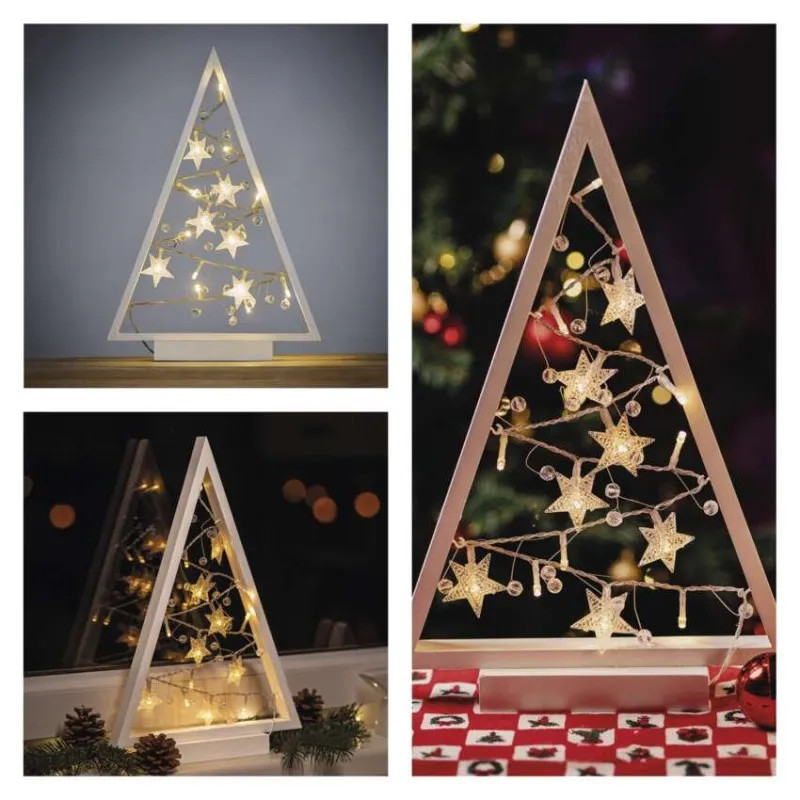 LED dekorácia – svietiaci stromček s ozdobami, 40 cm, 2xAA, vnútorný, teplá biela, časovač