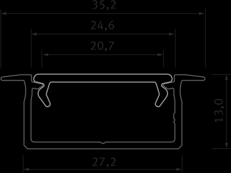 Určený na zapustenú montáž do medzery, alebo do vyfrézovanej drážky.