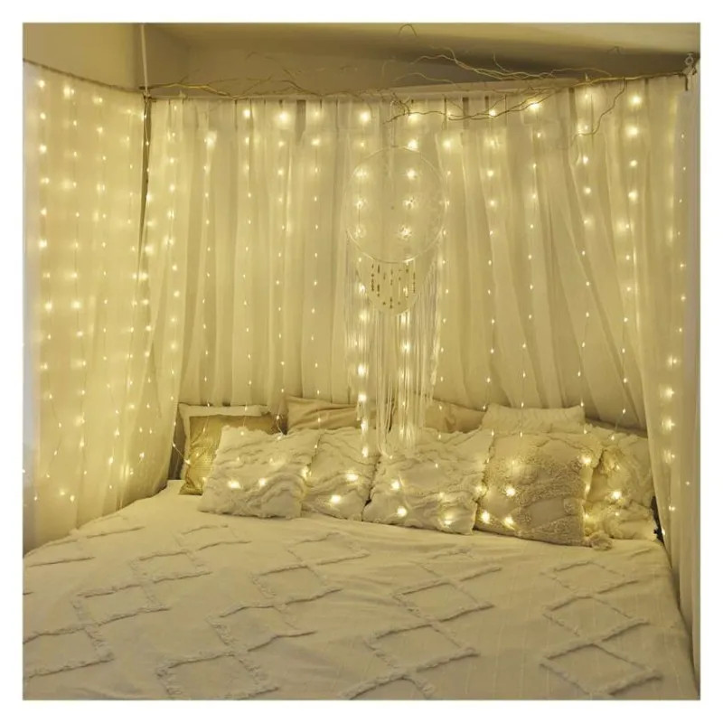 LED vianočná drop reťaz – záclona, 1,7x2 m, vonkajšia aj vnútorná, teplá biela, programy
