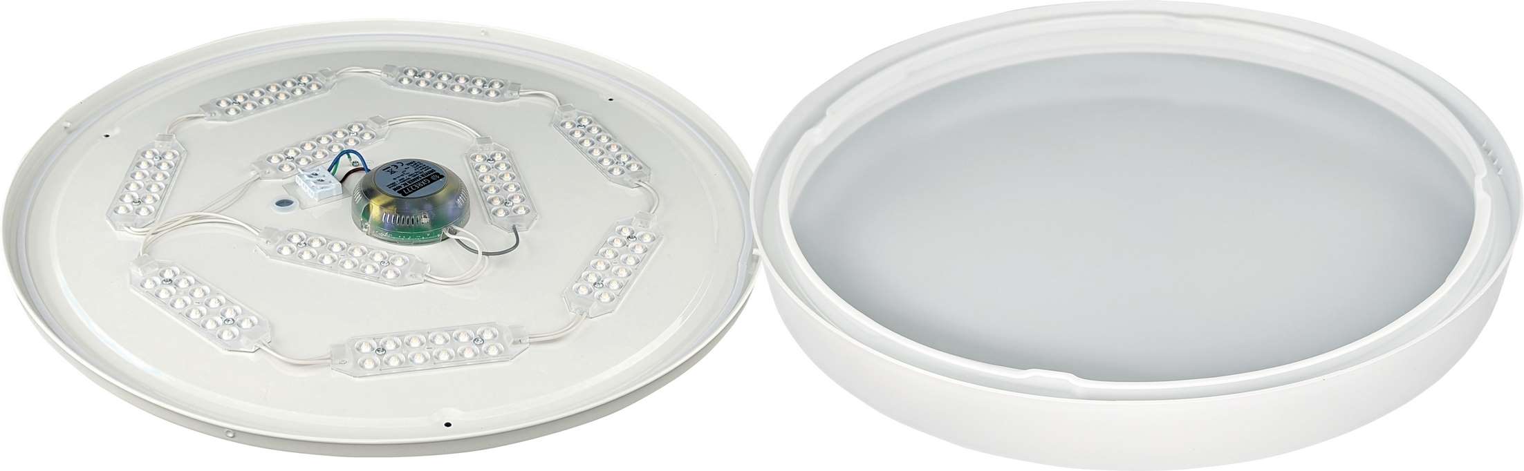 Stropné a nástenné interiérové ??LED SMD svietidlo s bielym ozdobným krúžkom a diaľkovým ovládaním.