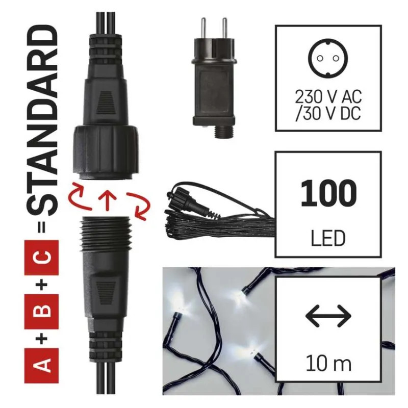 • Základná sada pre spojovacie reťaze Standard, 10 m, vonkajšia, studená biela, časovač