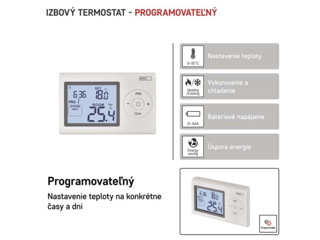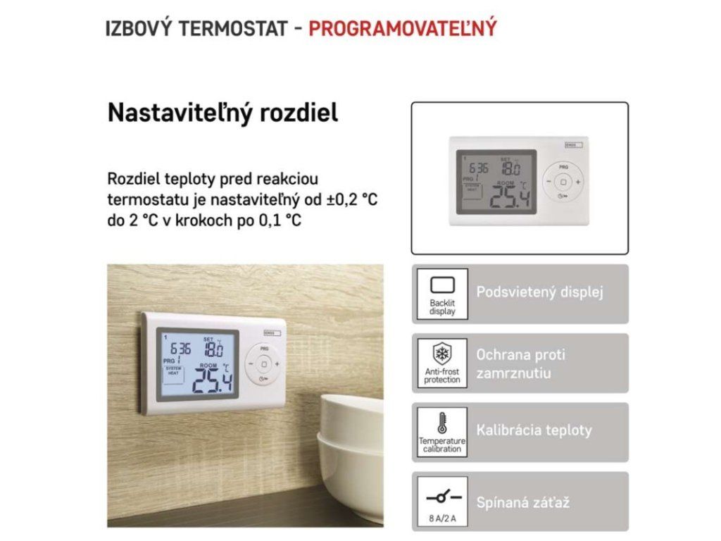 | typ ovládania: | programovateľný elektronický izbový termostat |