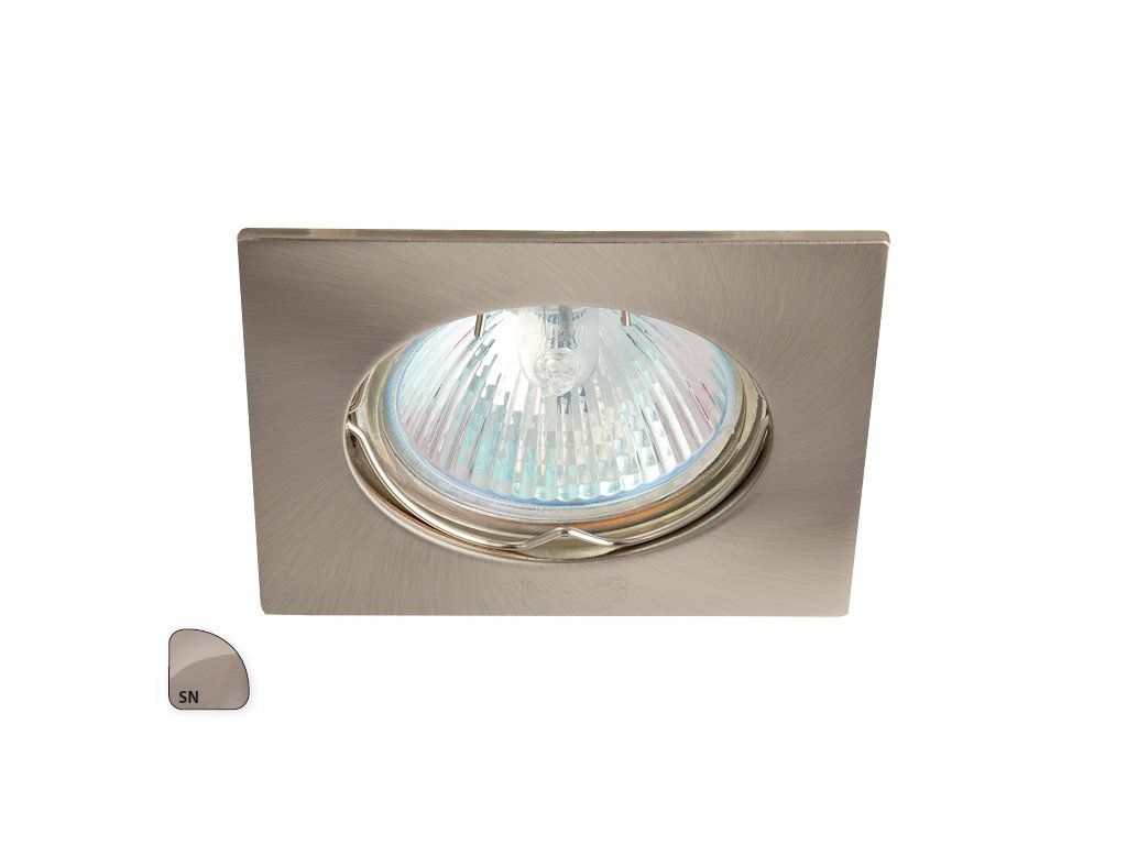 Bodovka vstavaná do pohľadu pevný štvorec, farba saténový nikel. Pre hlaogénovú žiarovku typu MR-16 max 50W( kód GXZH017) , alebo LED POWER MR16 3x1W-CW (kód GXLZ013). Žiarovka nie je súčasťou dodávky. Pre tieto žiarovky MR-16/12V sa používa objímka G5,3, ktorá je súčasťou dodávky. Žiarovka sa uchytí do kovového krúžku pomocou pružinky. Určená k montáži na normálne horľavé povrchy.Dodatočné parametre