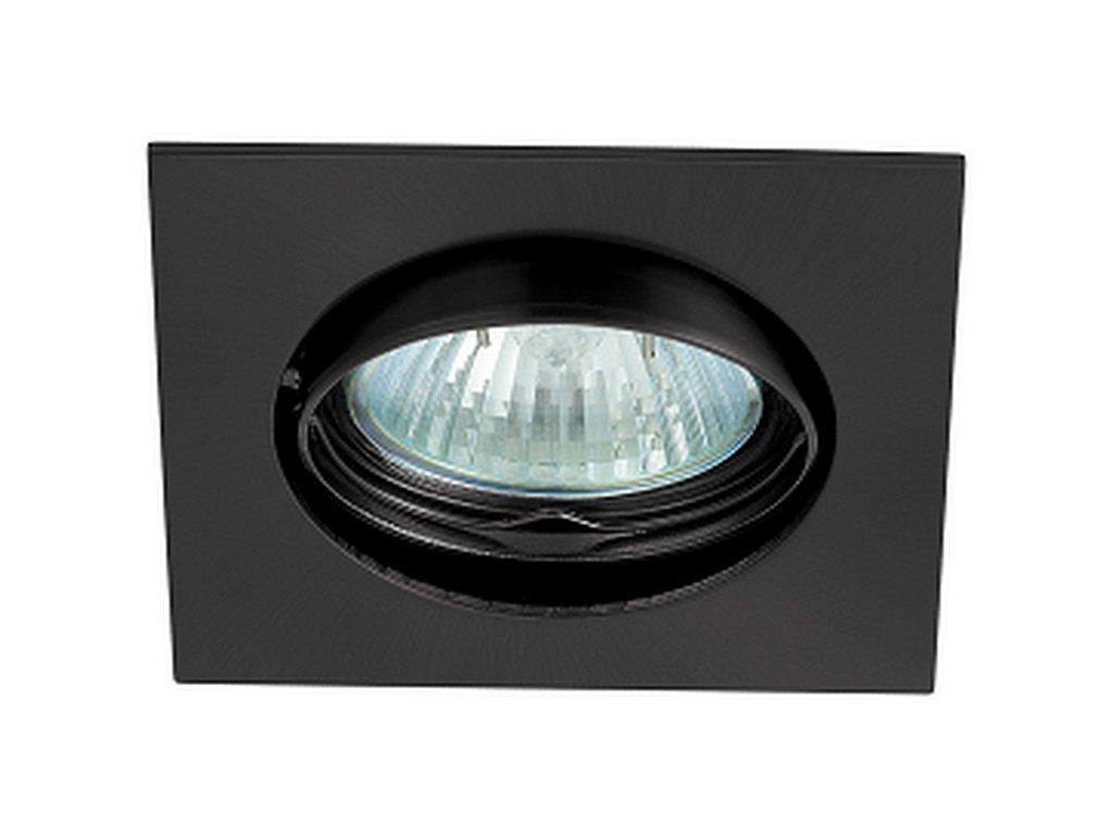Bodovka vstavaná, do podhľadu pevný štvorec, v matnej čiernej farbe, pre žiarovky typu MR-16 max. 50W Žiarovka nie je súčásťou dodávky. Pre žiarovky MR-16/12V sa použije objímka G5,3, ktorá je súčásťou dodávky. Žiarovka sa uchytí do kovového krúžku pomocou pružinky. Určené k montáži na normálne horľavé povrchy.Dodatočné parametre