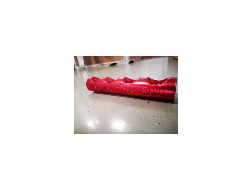 Sklenený červený svietnik so vzorom na 4 sviečky