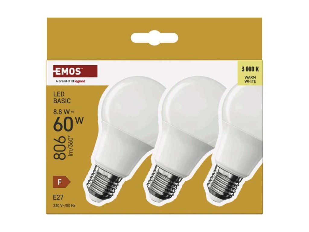 LED žiarovka Basic A60 / E27 / 8,8 W (60 W) / 806 lm / Teplá biela