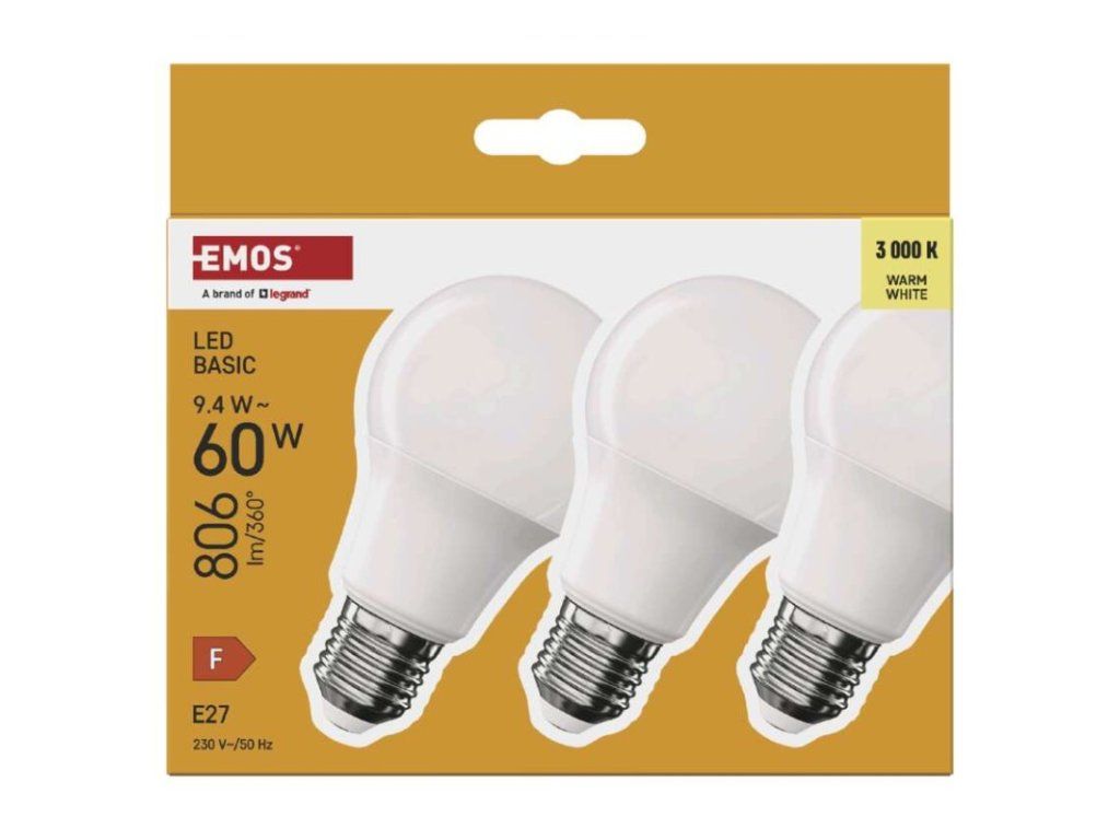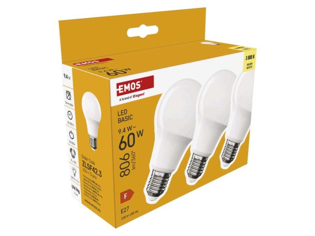 LED žiarovka Basic A60 / E27 / 9,4 W (60 W) / 806 lm / Teplá biela