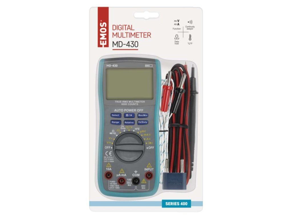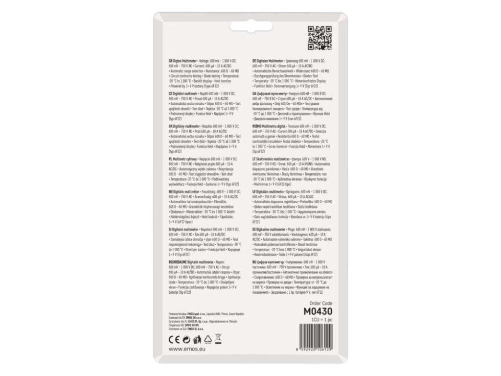 | súčasť dodávky: | batérie, meracie hroty, redukcia pre meranie tranzistorov, tepl. sonda typu K |