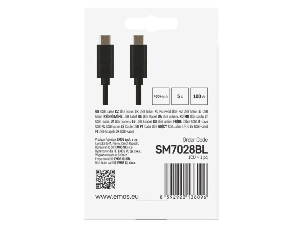 Nabíjací a dátový kábel 2.0 USB-C / USB-C, 1 m, čierny
