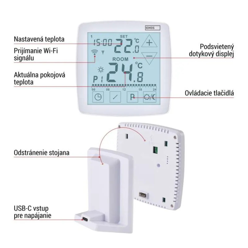 typ ovládania: programovateľný elektronický izbový termostat, možnosť ovládania cez mobil (iOS, Android)