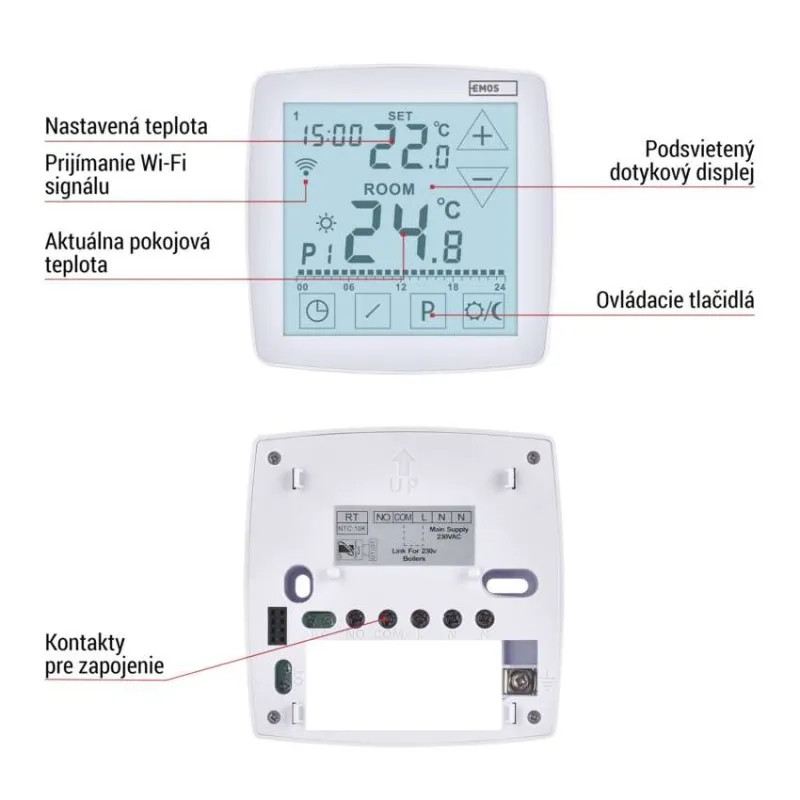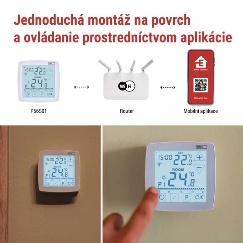 typ ovládania: programovateľný elektronický izbový termostat, možnosť ovládania cez mobil (iOS, Android)