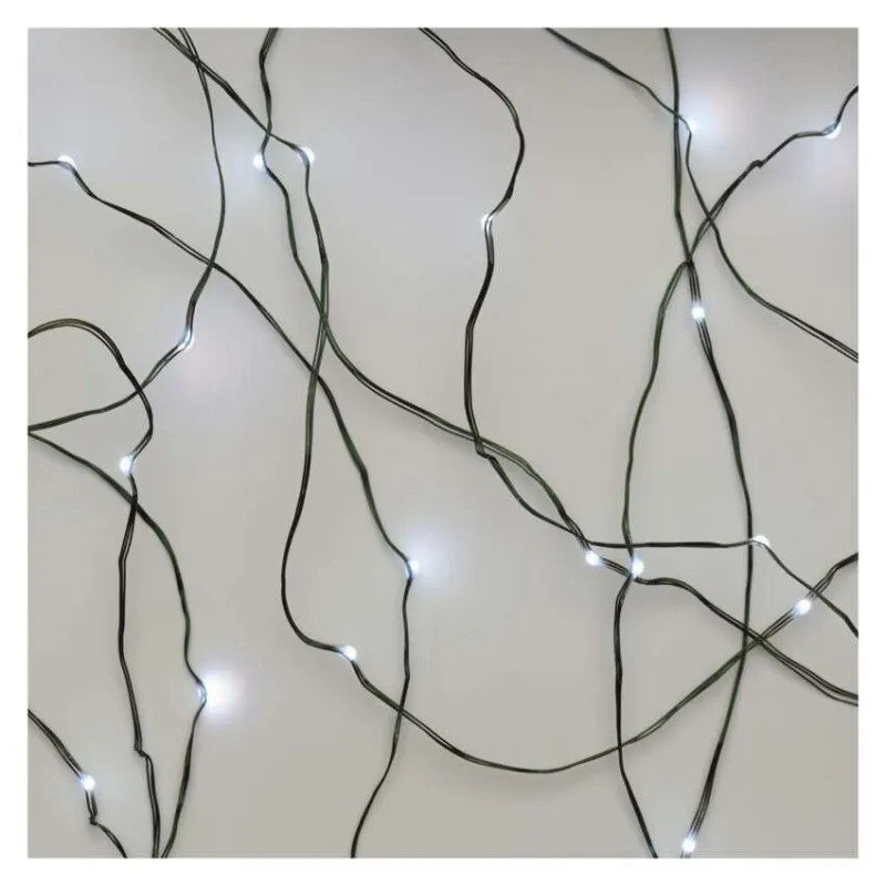 LED vianočná nano reťaz zelená, 15 m, vonkajšia aj vnútorná, studená biela, časovač