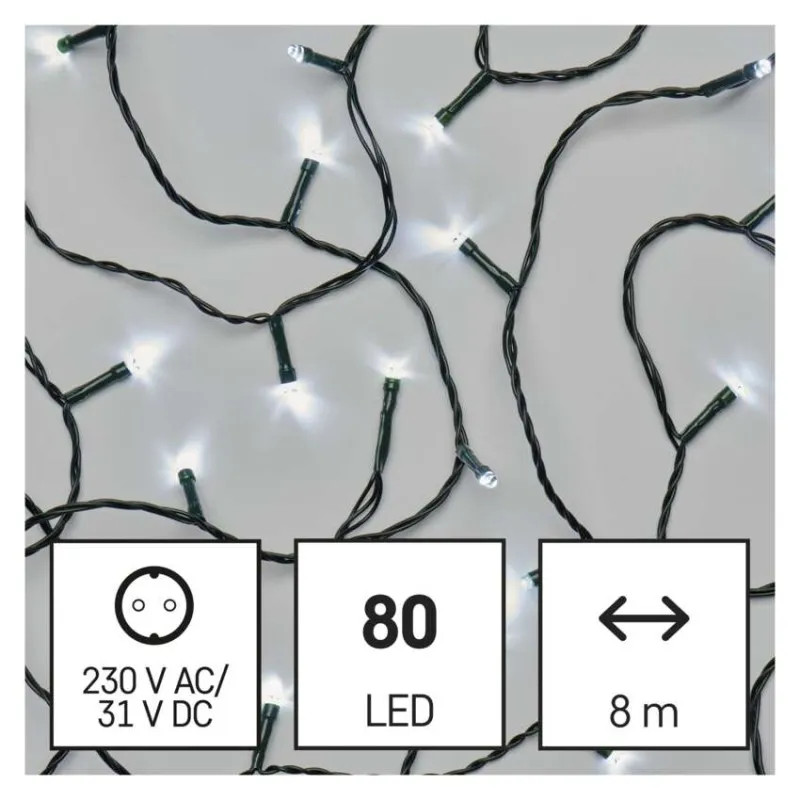 LED vianočná reťaz, 8 m, vonkajšia aj vnútorná, studená biela, časovač