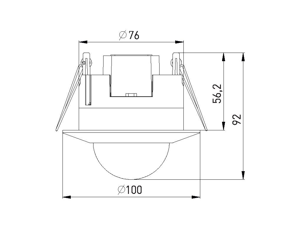 Infračervený prítomný pohybový snímač určený do interiéru. Je určené pre dlhodobú detekciu pohybu - na automatické spínanie (zopnutie/vypnutie) prístrojov typu osvetlenia. Najvyššia detekcia dosahuje priamo pod senzorom, ďalej od osi umiestnenia sa citlivosť snímania pohybu znižuje. Regulátory umožňujú plynulo nastaviť: - čas (TIME) - nastavenie (noc/deň) (LUX) Spínacím prvkom senzora je relé. Veľkosť montážneho otvoru: 76 mm Maximálne zaťaženie: 2000 WDodatočné parametre