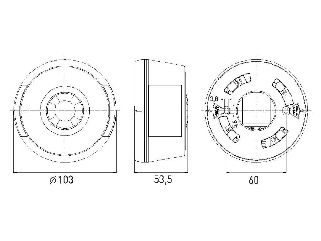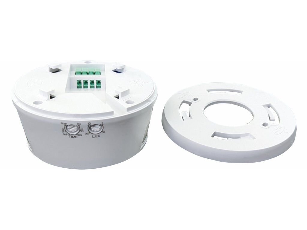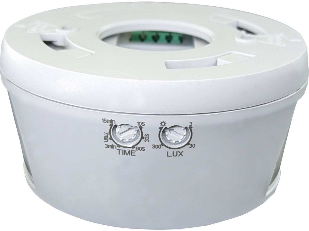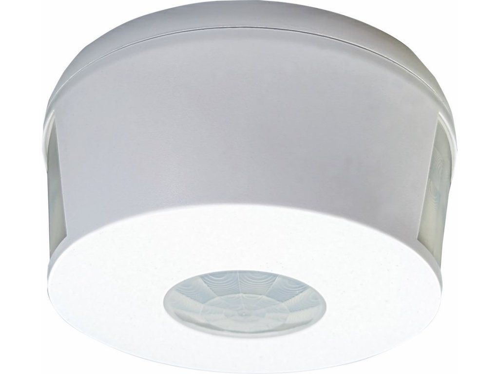 Infračervený (PIR) pohybový senzor z plastu vhodný na pohybové ovládanie svietidiel. Senzor je vhodný iba na použitie vo vnútri budov. Inštalácia prisadením k stropu. Určený na snímanie dlhých, úzkych priestorov. Vybavený tromi PIR snímačmi, ktoré umožňujú detekciu pohybu ako zo spodnej strany, tak aj z oboch bočných strán senzora. Ľahko prístupné regulátory bez nutnosti demontáže senzora. Súčasťou senzora sú regulátory s možnosťou regulácie času (TIME) a ??nastavenie NOC/DEN (LUX). Spínacím prvkom senzora je relé. Maximálne zaťaženie: 2000 WDodatočné parametre