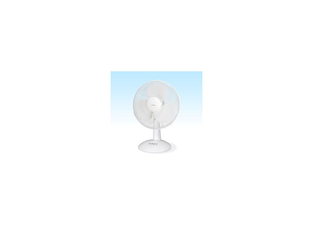 Stolový ventilátor. Veľmi tichý a spoľahlivý chod. 3 rýchlosti motora. Oscilujúci (otáčanie v rozmedzí 90°). Vrtuľa chránená mriežkou proti možným poraneniam. Priemer vrtule: 30 cm. Rozmery Š x V x H v cm: 33 x 51 x 26. Hmotnosť: 1,8 kg. Napájanie: 230V~ 50Hz, 30 W.Dodatočné parametre
