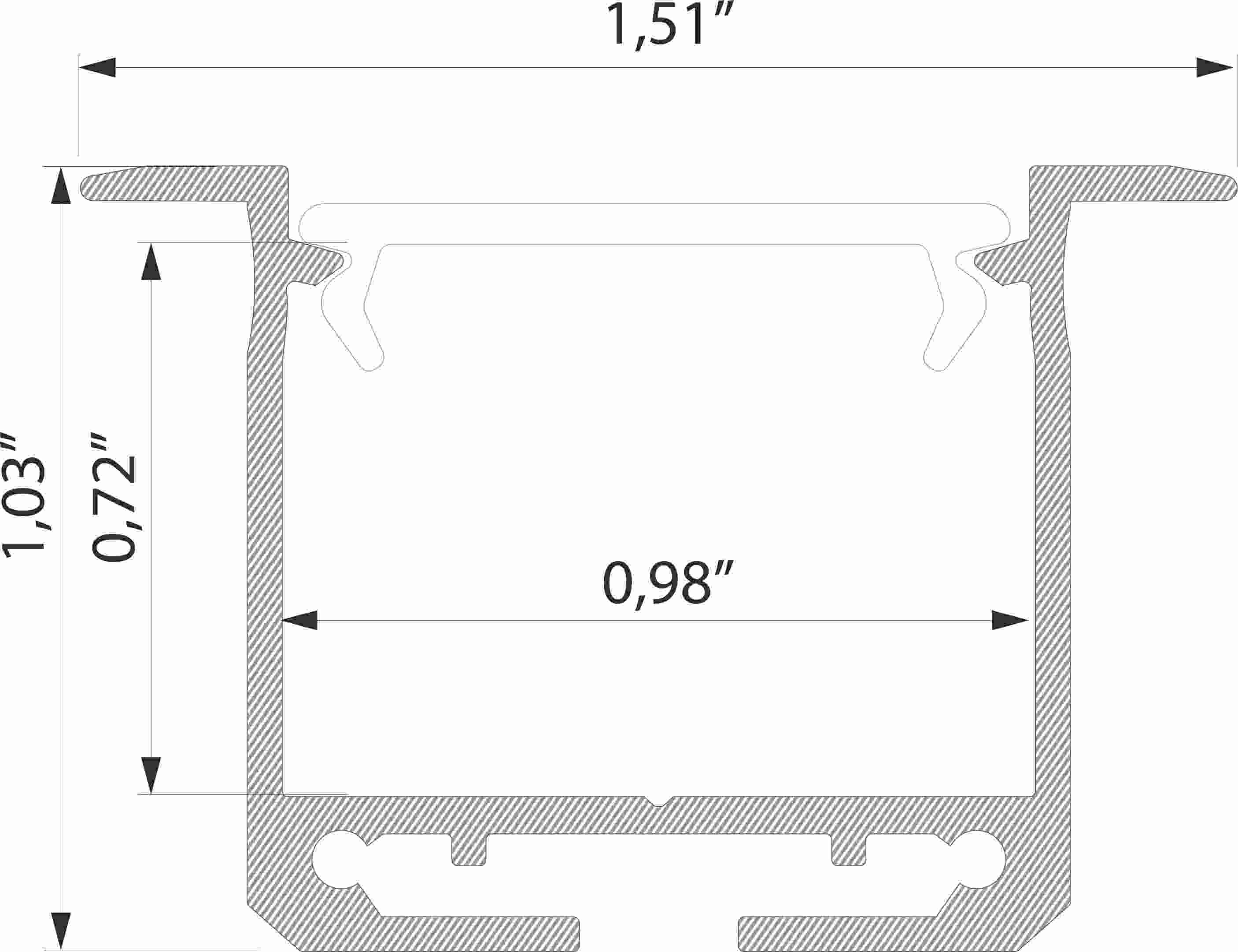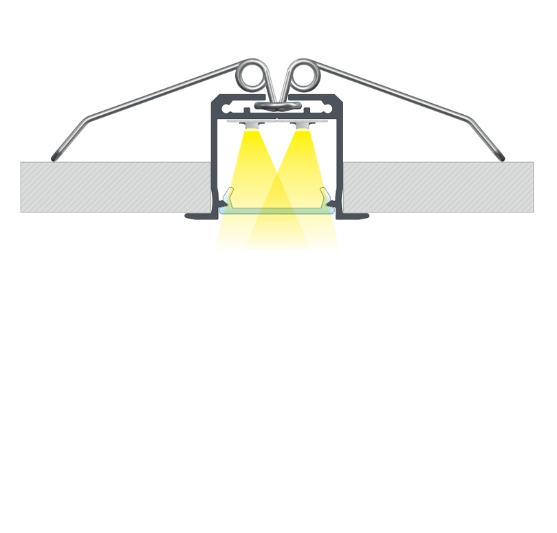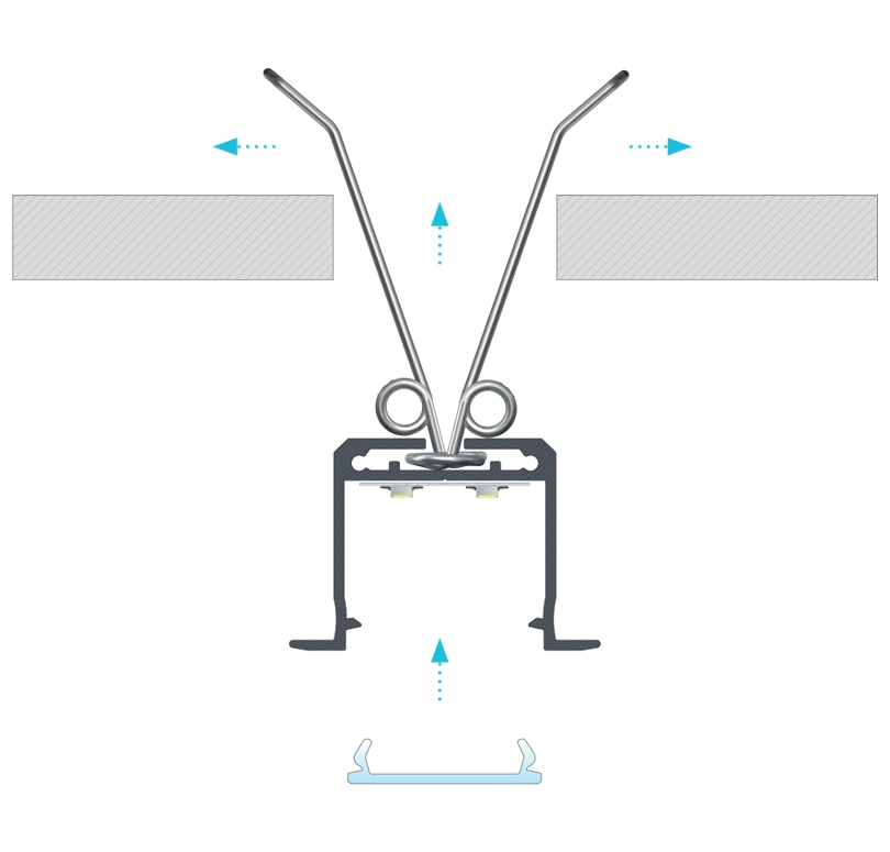 Určený na zapustenú montáž do medzery, alebo do vyfrézovanej drážky.