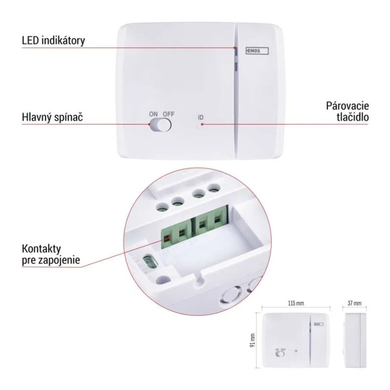 napájanie vysielača: 2× 1,5 V AA (súčasť balenia) alebo 5 V USB adaptér (nie je súčasťou balenia)