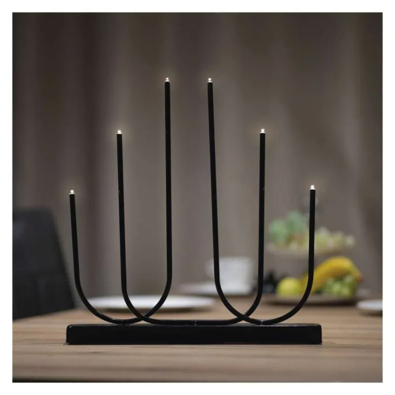LED svietnik kovový čierny, 40 cm, 2x AA, vnútorný, teplá biela