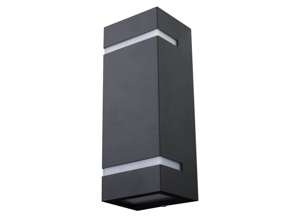 Nástenné designové svietidlo, určené pre LED zdroje 2x GU10 o maximálnom výkone 7W. Vďaka vodeodolnej konštrukcii (IP44) vhodné pre vnútorné alebo vonkajšie použitie. Teleso svietidla tvorí hliník, difuzor polykarbonát.