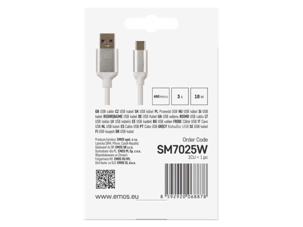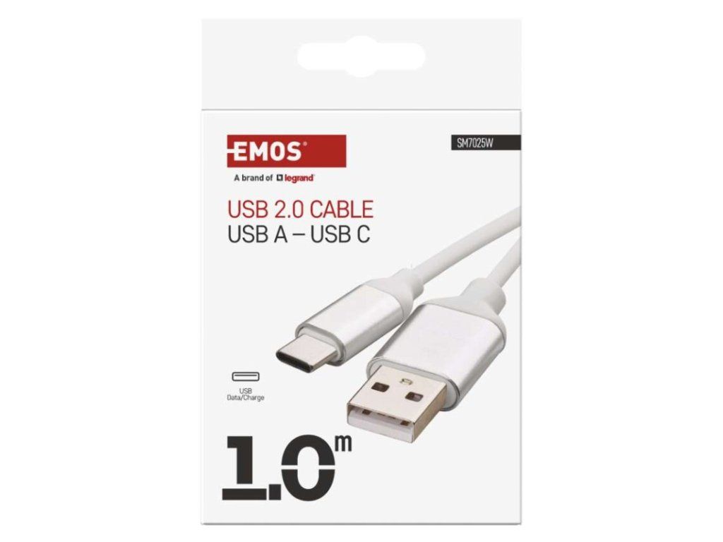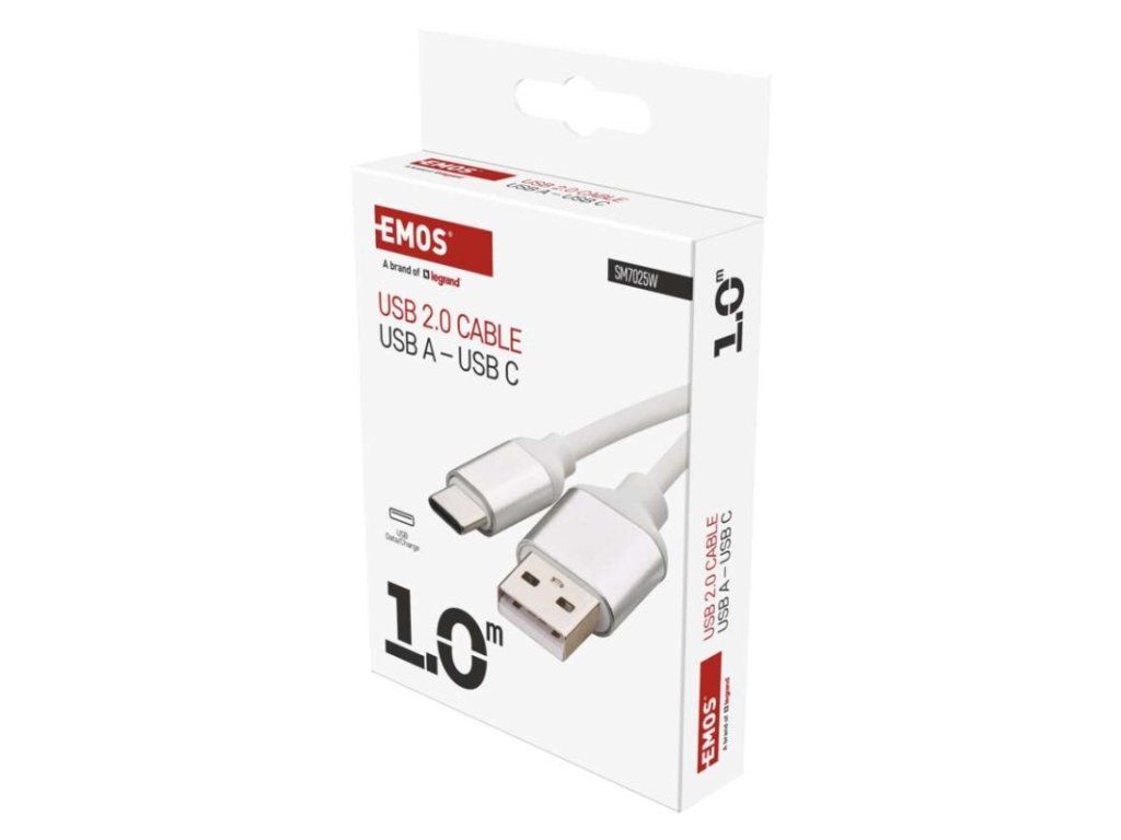 Nabíjací a dátový kábel USB-A 2.0 / USB-C 2.0, 1 m, biely