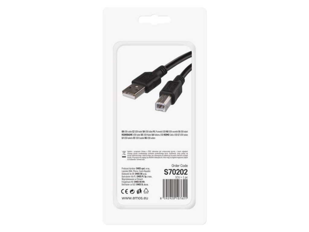 USB kábel 2.0 A vidlica – B vidlica 2m