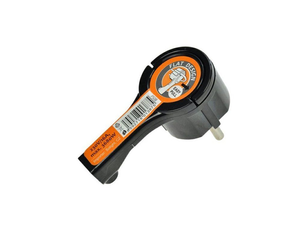 Zástrčka SOLIGHT P50B Farba : čierna Napätie: 230V Prúd: 16A Výkon: 3680W Krytie: IP 20 Zástrčka má výklopný úchyt na ľahké vytiahnutie zo zásuvky