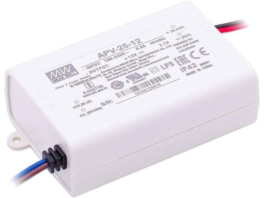 ELEKTRONICKÝ LED DRIVER S KONSTANTNÍM NAPĚTÍM • napájecí napětí: 90-264VAC • utěsněné plastové pouzdro v souladu se standardem IP67 • konstantní výstupní napětí bez ohledu na zatížení • ochrana proti zkratu, přetížení a přepětí • třída izolace II (bez uzemnění) • chlazení s otevřenou cirkulací vzduchu • provozní teplota -30~+40°C, -30~+70°C (při zatížení do 60%) • v souladu s řadou norem a certifikátů • nízké náklady, vysoká spolehlivostDodatočné parametre