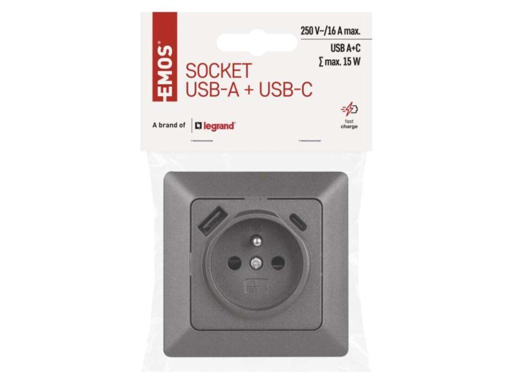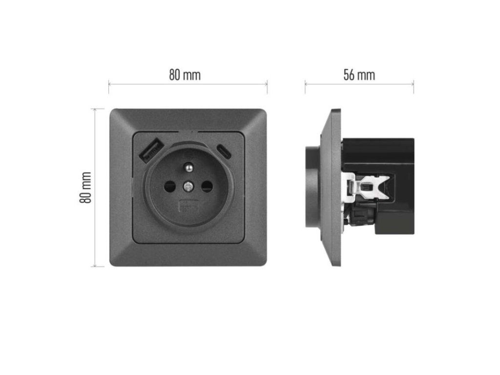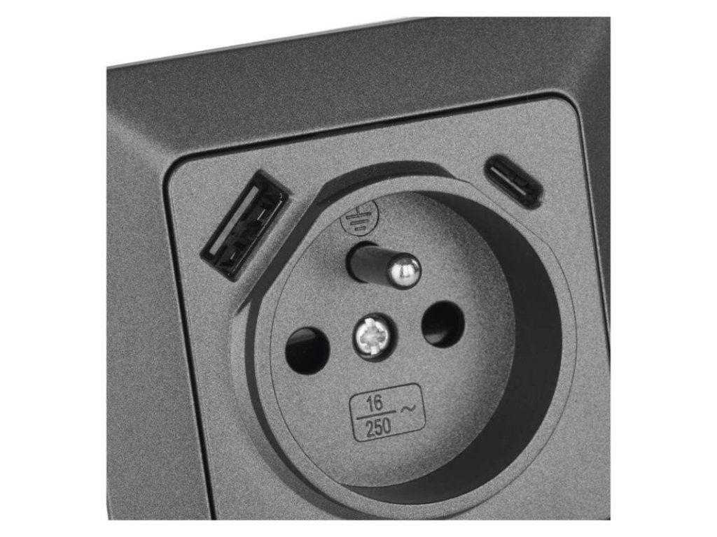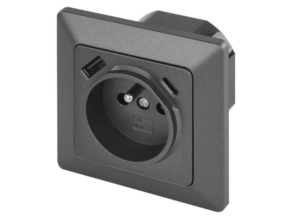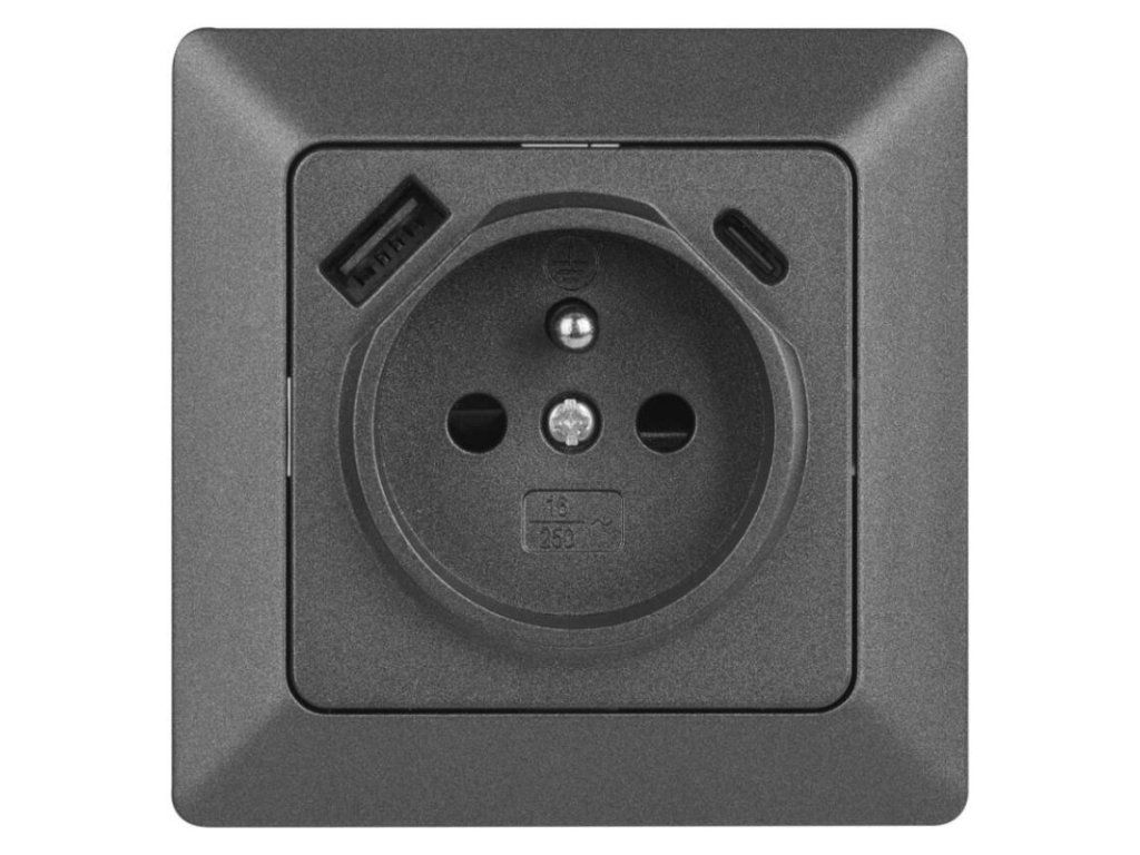 Zásuvka s USB-A+USB-C, antracit