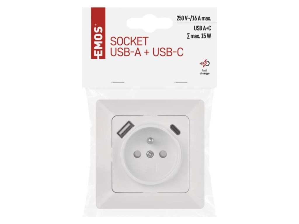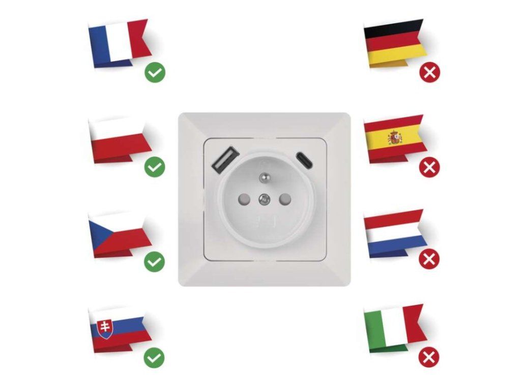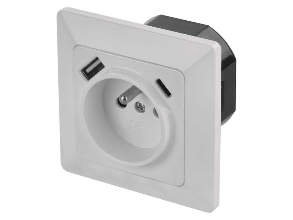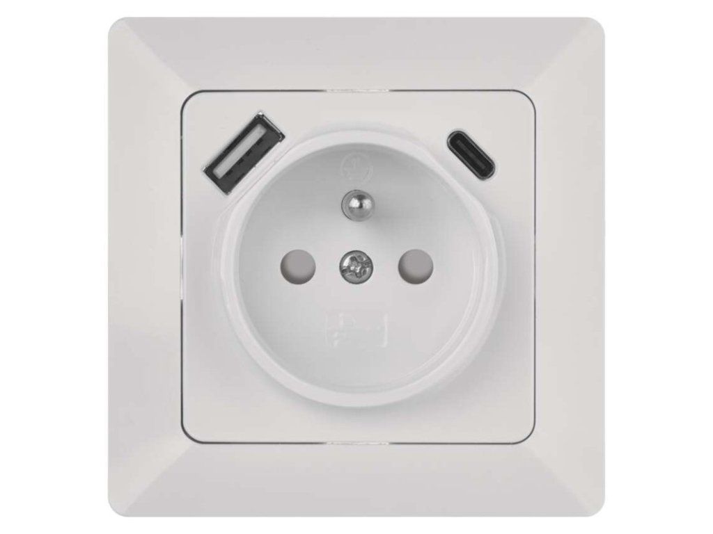 | produkt: | jedna zásuvka s ochranným kolíkom a výstupom USB 3 A max. |